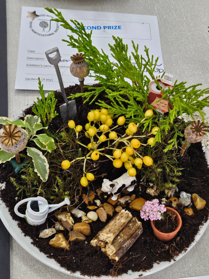 The big event for us every year is our open show. As the name implies, it is open for anyone to enter, with competitions for the best fruit, flowers, vegetables, crafts, cakes and preserves. There is a children's and novices' section, for those new to showing. Refreshments are available, and a raffle, and near the end of the day many of the exhibits are auctioned off, so it's a great opportunity to pick up some fruit, flowers or cakes at a great price.